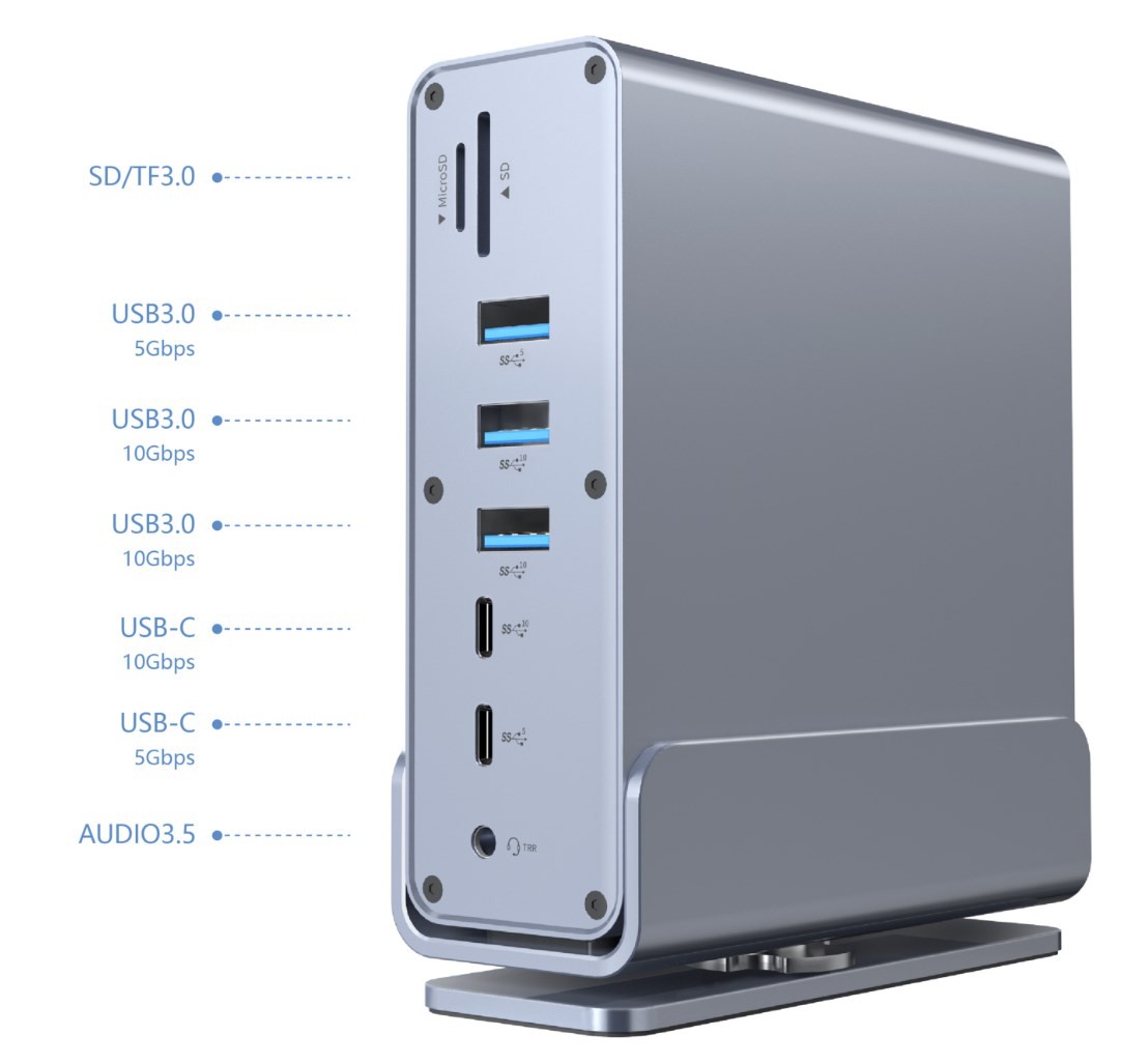 GEMBIRD MULTI ADAPTER USB TYP CF 15W1 (USB AF-PORTY V.2X2+V.3X3, TYP CF+HDMIX2+DISPLAYPORT+PD+CZYTNIK KART+GIGALAN+AUDIO SZAR