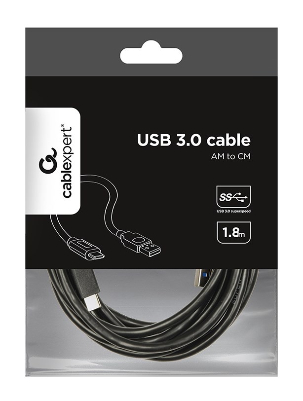 Kabel GEMBIRD CCP-USB3-AMCM-6 (USB 3.0 M - USB typu C M; 1,8m; kolor czarny)