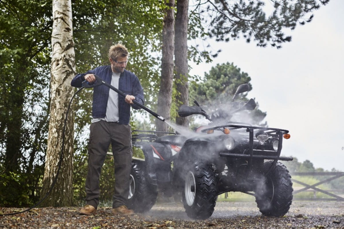 Zawartość zestawu: Szczotka samochodowa, Pianownica, Igła do czyszczenia dysz myjki ciśnieniowej, Dysza do podwozi, Dysza rowerowa, automatyczna z bagnetem