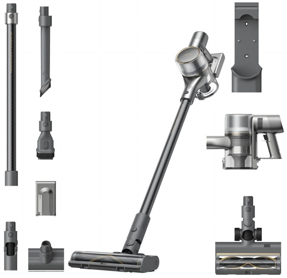 Zawartość opakowania: Ssawka szczelinowa x 1, Szczotka wielofunkcyjna x 1, Miękka szczotka X 1, Akumulator x 1, Rura x 1, Uchwyt ścienny x 1, Ssawka uniwersalna x 1, Elektroszczotka x 1, Adapter x 1, Odkurzacz x 1